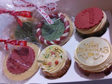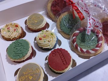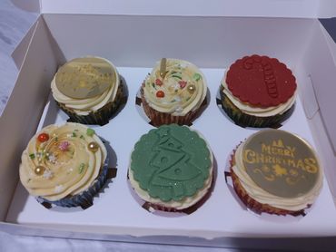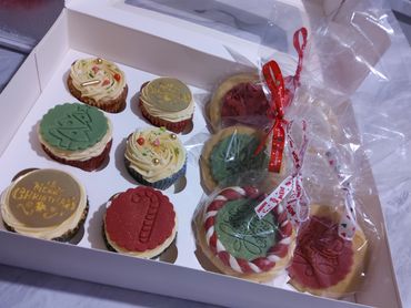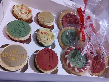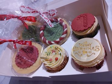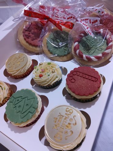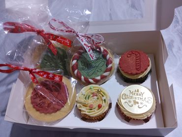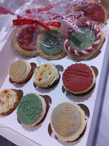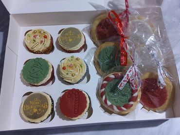 6 Box of vanilla Christmas Cupcakes and Shortbread cookie's 3 of each. Can be personalised.