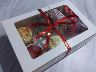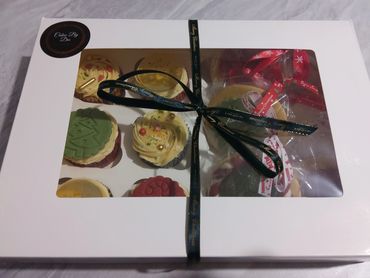 12 box of Christmas themed Vanilla Cupcakes and Fondant Shortbread cookie’s. 6 of each. Can be personalised.